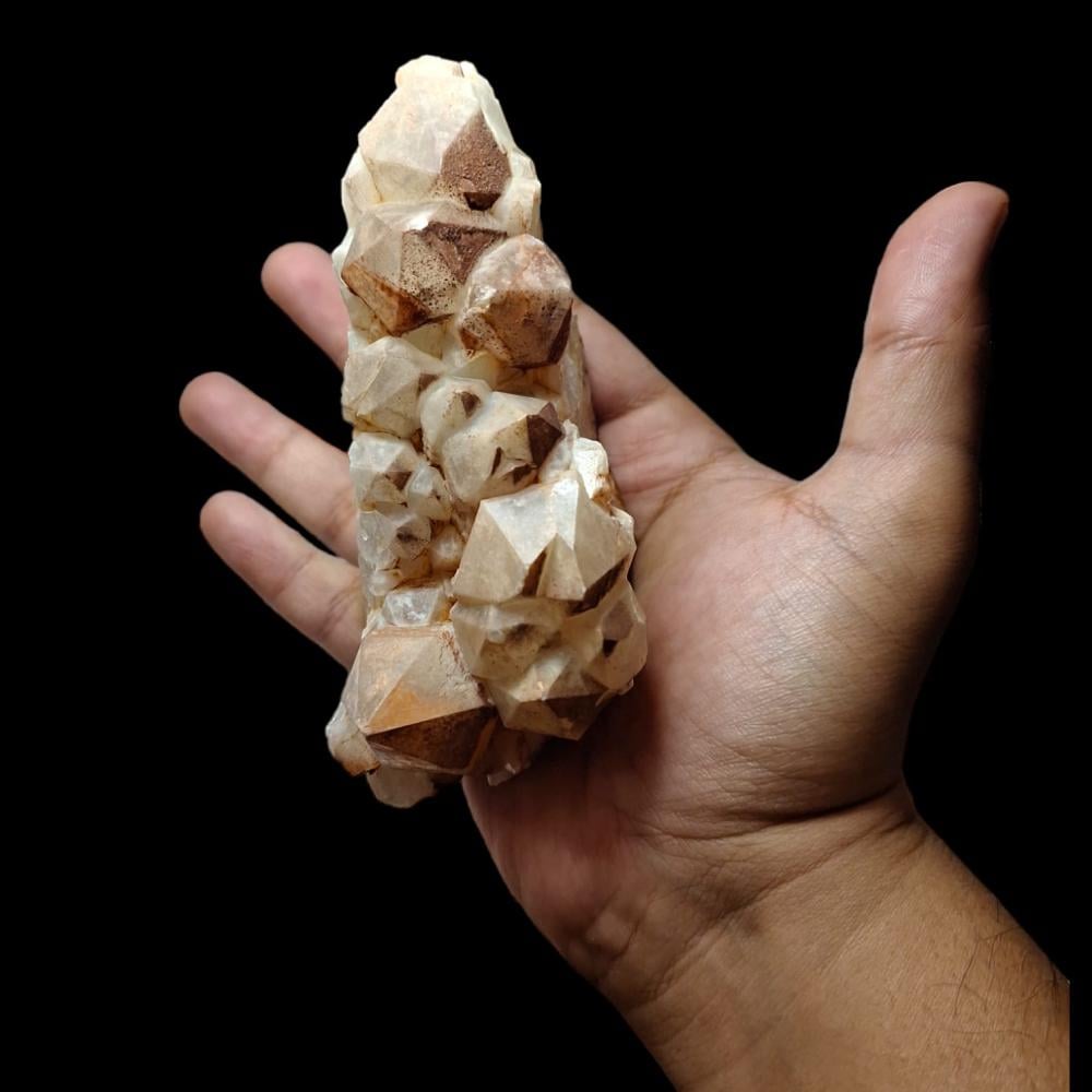 حجر طبيعي يحتوي على بلورات كوارتز خام مع الحجر الحاضن طبيعي مناسب كتحفة رائعة للإقتناء أو الإهداء وزن الحجر كاملاً : 520 جرام تقريبا