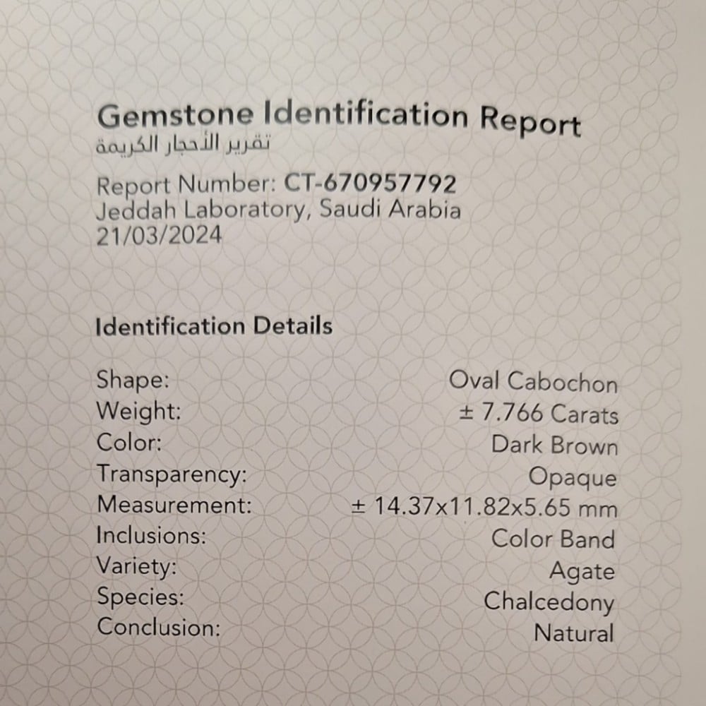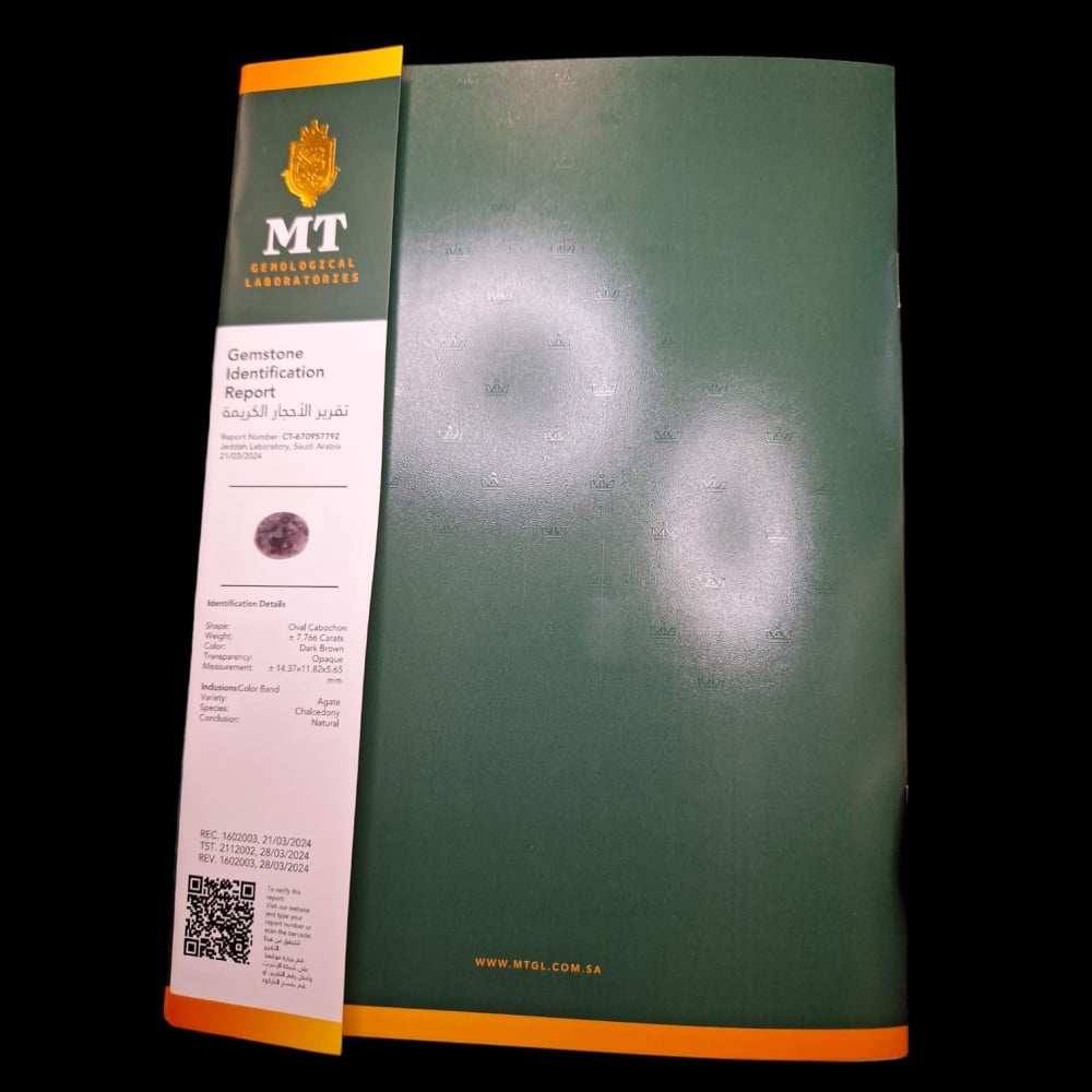 اسم الحجر : حجر عقيق تداخل الوان رائع طبيعي مفحوص بشهادة مختبر وزن الحجر : 7.766 قيراط قص الحجر : Oval Cabochon هل يوجد أي معالجة حسب تقرير المختبر: طبيعي 100% مصدر شهادة المختبر : MT