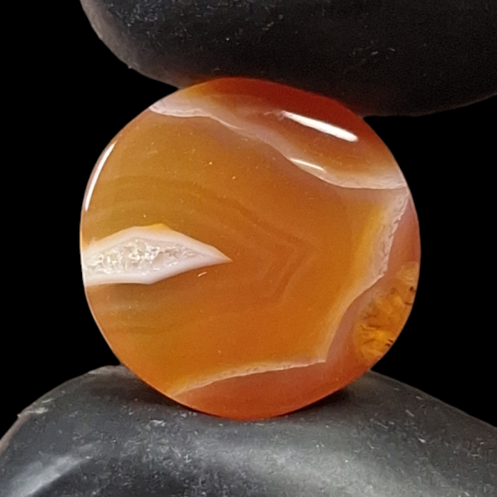 اسم الحجر : حجر عقيق مشمشي دائري طبيعي .